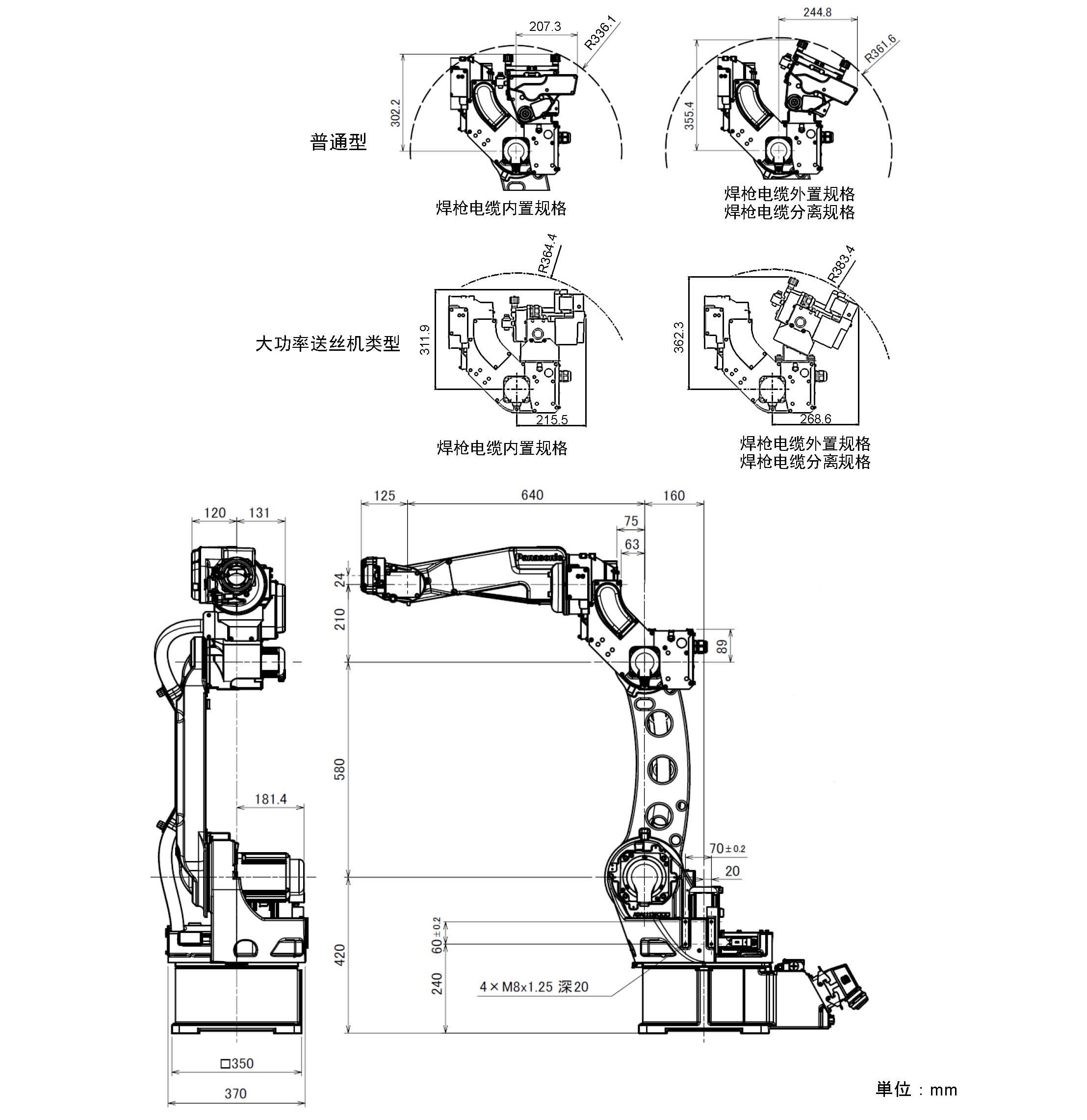 | 焊枪电缆内置型:±220° | 焊枪电缆内置型:±220° | 焊枪电缆内置型:±220° | ||||